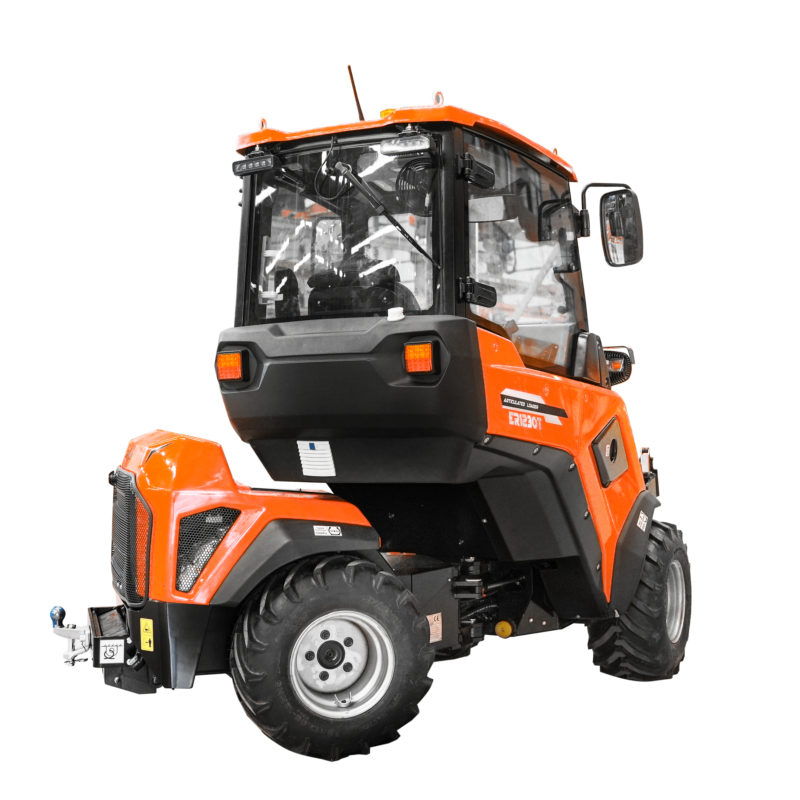 3060mmERW1230T-C With Closed Cabin, Standard Bucket, Kubota D1105 Engine(Stage V/EPA4), Quick Hitch, European Hydrostatic Transmission System, Electric Gear Shift, LED Working Lights, Electric Parking Brake, Hand Throttle, Floating Function, 26×12-12 Tyre.