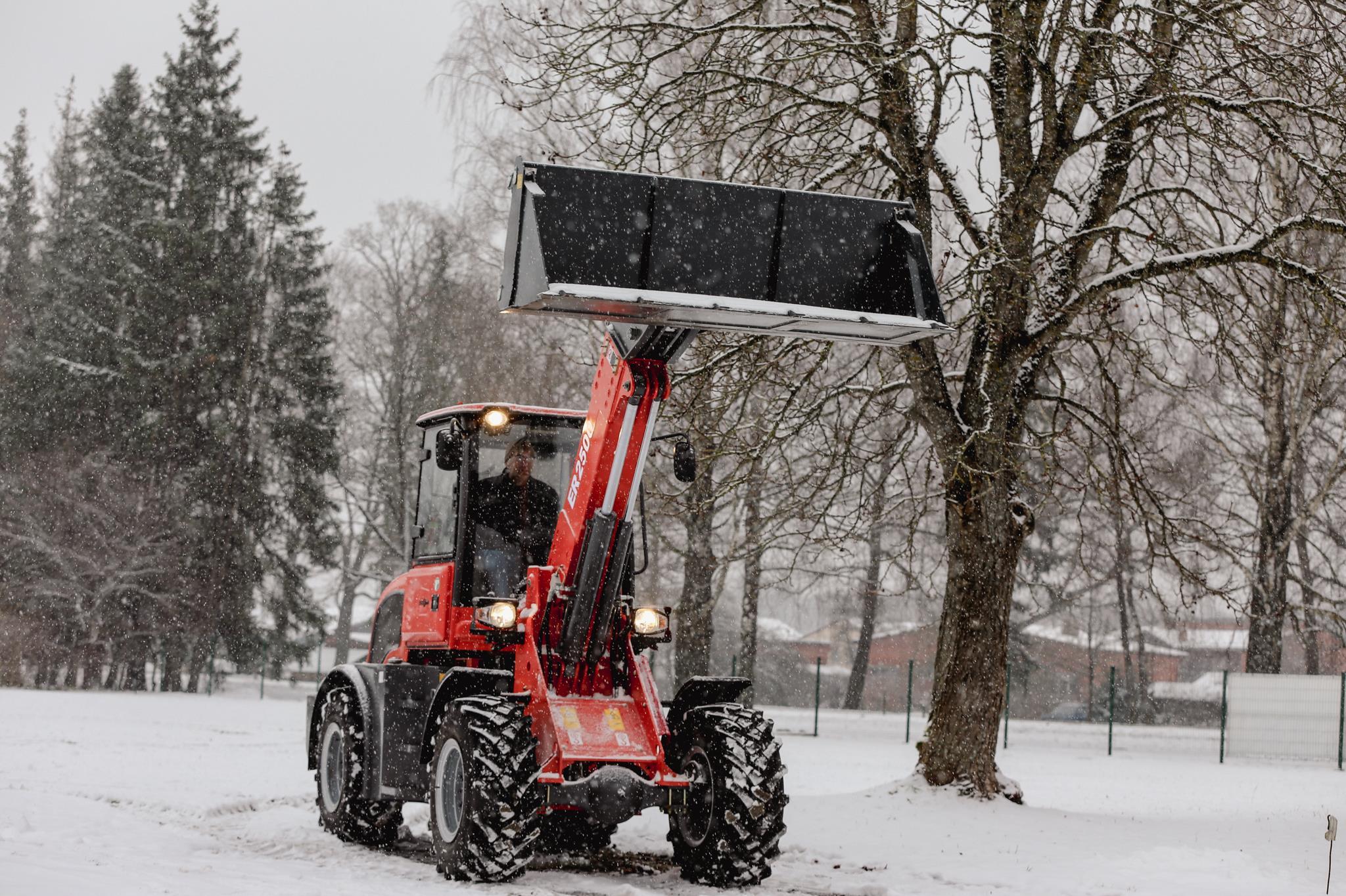 The ER2500 has a telescopic boom that can lift up to 4.5 meters and carry 2,500 kilograms. Its hydraulic system and transmission work very well for all farm tasks. The cab is simple and practical, with a wide view and easy control of all functions.