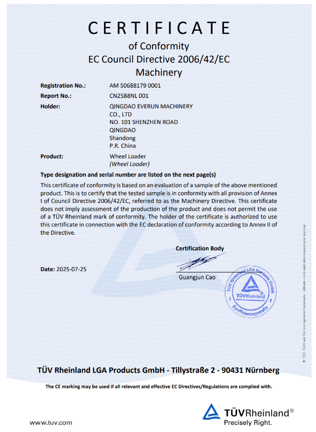 At Everun, we are proud to be one of the few companies in China that both design and build our own compact wheel loaders. We are not just a factory. We are a brand with our own research, production, and sales. In 2025, many of our machines passed CE by TÜV. This is an important step that shows our promise to grow in Europe. It also shows how strict we are with safety and quality.