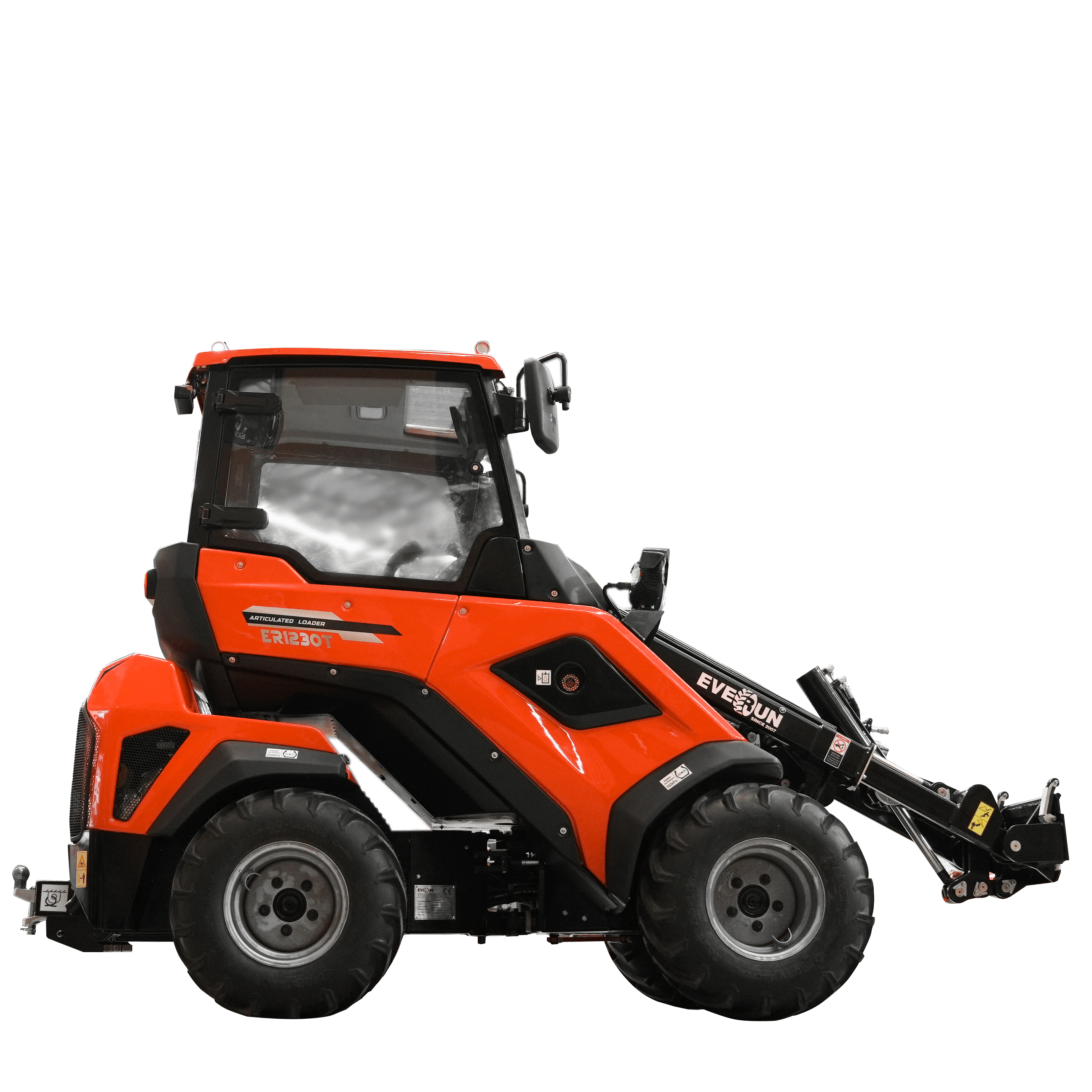 ERW1230T is a compact wheel loader with a 1200kg maximum loading capacity, demonstrating excellent performance in applications such as farms, gardens, stock farms, warehouses, factories, small engineering projects, construction sites, and environments with rough terrain.